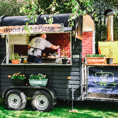 The Pizza Box by Event Boxes Ltd is the first in it’s fleet of converted Rice Horse Boxes complete with Wood Fired Oven. Located on a small holding in Perthshire as much as the produce as possible is homegrown or foraged from the surrounding countryside. Pizzas with a difference!